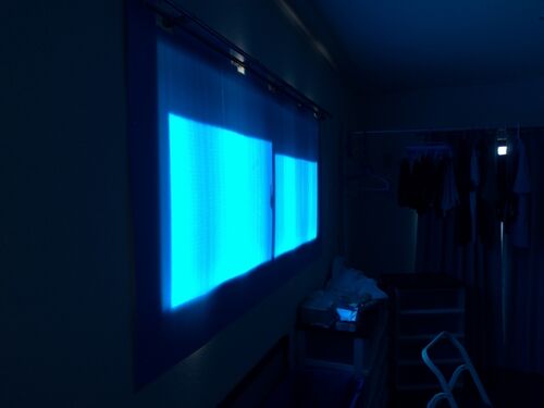 まずは、強烈な朝日が差し込む東側の窓から施工しました。 室内が青くなってますが、イルミネーションではありません(笑) こちら側はベランダが無く、作業する足場がないので、内側からの施工になりました。 元々は、カーテンを買うつもりでしたが、カーテ…